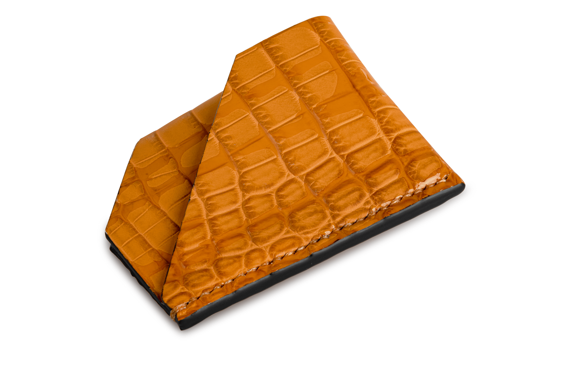 Un nuovo modo di custodire le tue carte di credito o i tuoi contanti, la Peggy Ring Wallet è una bustina da indossare, un vero complemento del tuo look originale. Realizzato in lucertola in un esclusivo colore sviluppato per Zeroclutch tra il bottle green e il light brown, ha l’interno in morbido capretto con finiture realizzate a mano.